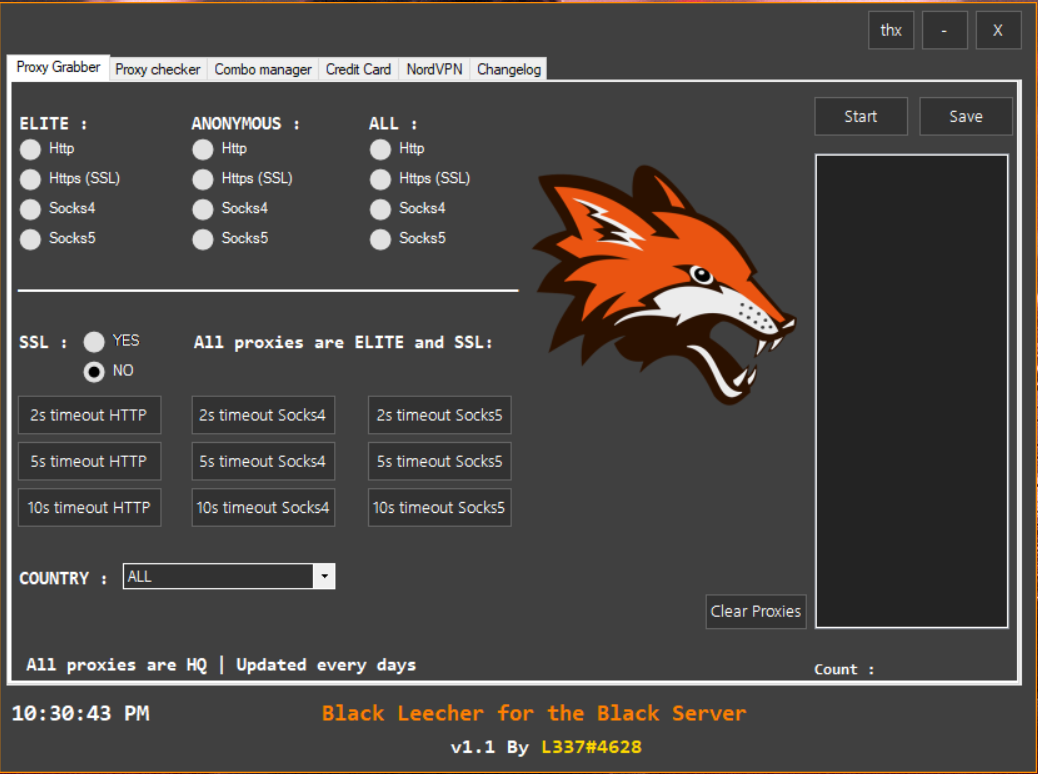 Black leecher is a multi-function tool. It has many option and capability. You can grab any kind of proxies with this tool. You can also check your proxies. It has combo manager by using that manager you can remove the duplicate, check for private combos, md5 decrypter, mail: pass to the user: pass etc. Next option is Credit Card with this option you can create, check bin or credit card file. It also has NordVPN checker that works fine but doesn’t have a capture feature.