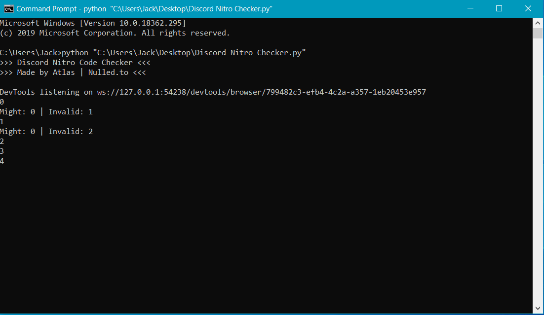 Discord doesn’t say if the code is invalid or valid so the cmd prompt just says “Might be Valid” for every single one