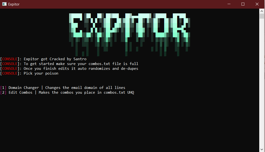 Expitor is a combo editor tool. It’s not like the other combo editor according to the creator it will convert your bad combo to HQ. It has two option 1. for domain changer which will change the domain of your combo like email@gmail.com to email@hotmail.com. I don’t know how this process takes places does it change domain according to certain pattern or randomly. 2. for edit combos. This option will make your combo UHQ mean ultra-high quality. I don’t know even it is possible or not. But I try this tool and this tool increases the line of combolist mean your combo become large and it also removes duplicate lines from your combolists.
