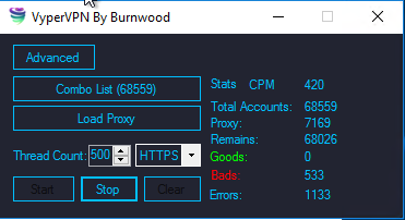 Latest VyperVPN checker by Burnwood. Here is another good VyperVPN checker that works perfectly. Although there are many VPN checkers available on my website, you should also give it a try. I think Burnwood is releasing good checkers these days first Malwarebytes then this checker. I don’t think I need to tell anything about how to use this checker. Because It has a simple and very familiar interface. Mind it you combo must be in the email: pass format.