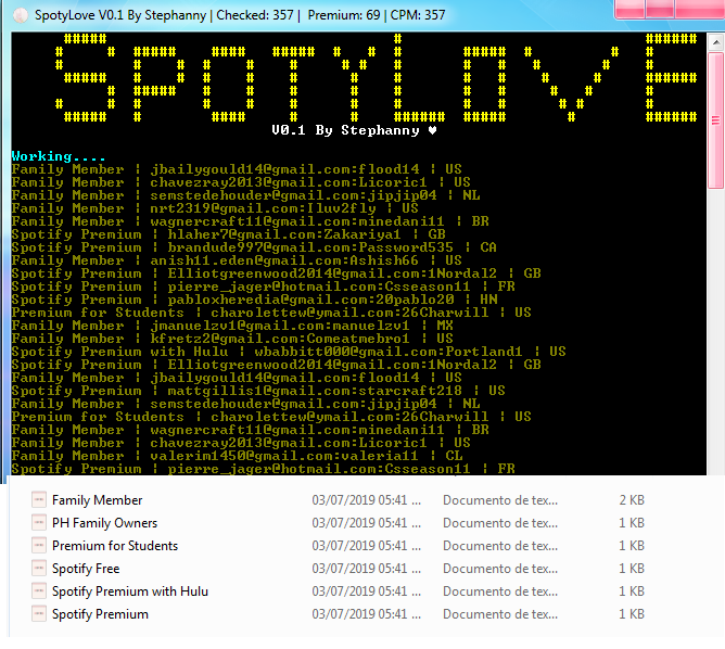 SportyLove is the latest Spotify checker by Stephanny. This checker store different accounts in multiple files as you can see in the above image. Although there are many good checkers available for spotify i think you should also give it a try. You don’t require proxies for this as it is a proxyless checker. You will have to put your combo in “combo.txt” file after that you can run the checker and wait for some good hits.