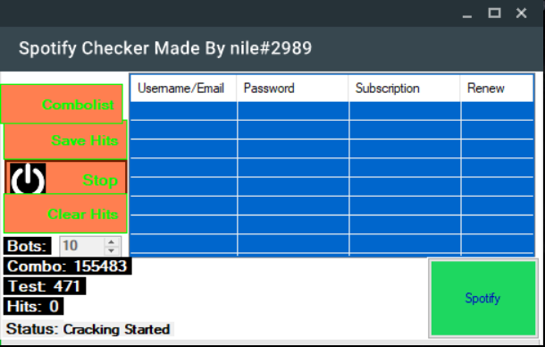 Today I’m presenting to you the latest Spotify checker. This checker has a simple interface and it is proxyless. All you have to do load your combolist and select the number of threads. There is nothing much to tell about this checker. It is very easy to use.